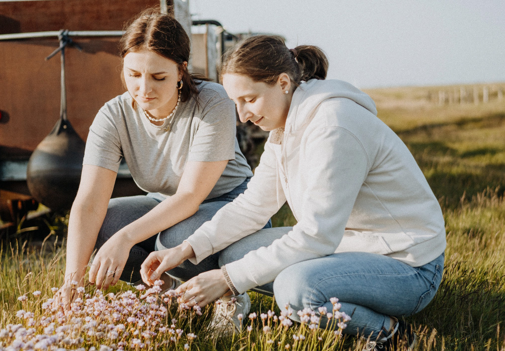 Bei uns muss sich die Natur schon was einfallen lassen, um das viele Salzwasser der regelmäßigen Überflutungen zu vertragen. Aber unsere typischen Pflanzen wie Queller, Wermut, Strandaster und Halligflieder haben da ihre eigenen Tricks, die ihr gemeinsam mit uns entdecken könnt.